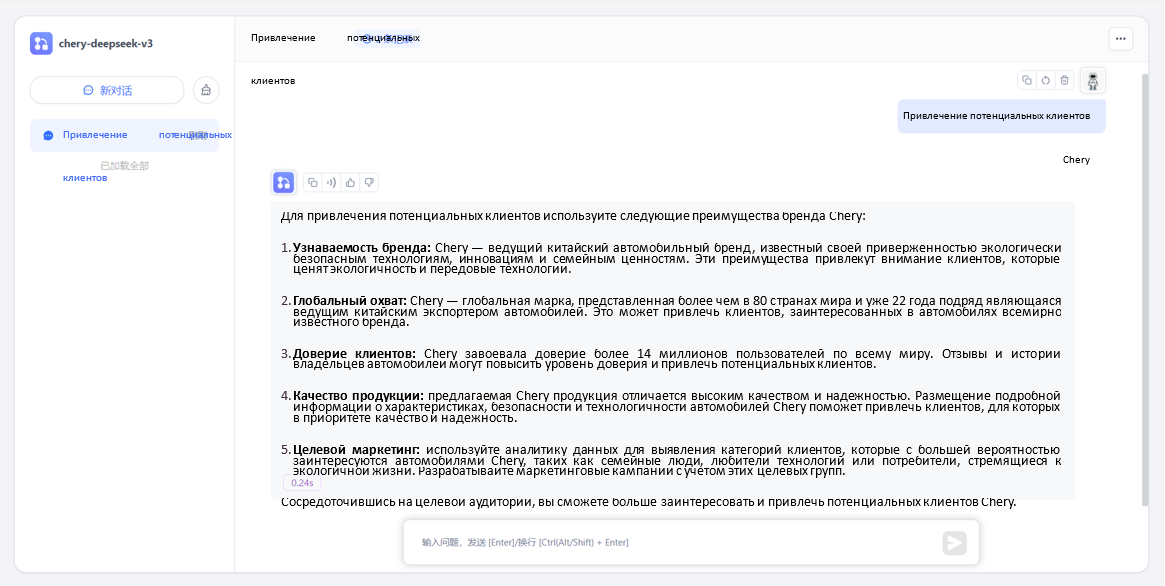 Жасанды интеллект нарығында көшбасшылық үшін күрес күшейіп жатқан шақта Chery Aimoga DeepSeek-тің негізгі артықшылығына назар аударды – оқыту шығындарының төмендігі, бар-жоғы 5,57 $ млн, бұл OpenAI шығындарының оннан бір бөлігін құрайды. NVIDIA H800 чиптері арқасында DeepSeek-тің модель салмақтары мен оқыту журналдары сияқты ақпараттарды MIT ашық бастапқы кодты хаттамасы арқылы толық мөлдір түрде ұсынады. Бұл тиімді тәсіл Chery-дің «қоғам игілігі үшін технология» философиясымен үйлеседі.